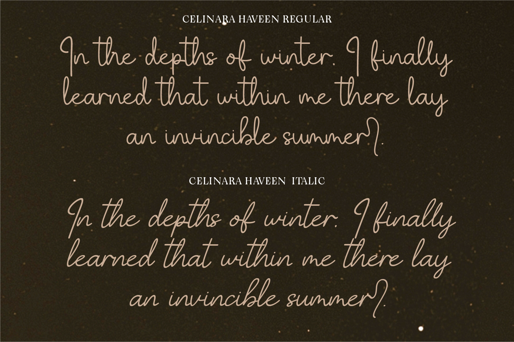 Celinara Haveen is an exquisite handwritten font that embodies femininity, authenticity, and elegance. With its gentle monoline strokes and soft, flowing curves, this typeface captures the essence of a handwritten signature, bringing a personal and sophisticated touch to every design. Perfectly designed to evoke warmth and charm, Celinara Haveen feels natural yet polished, making it ideal for wedding invitations, feminine branding, social media posts, logos, and more. This font is versatile and works beautifully across projects that aim to convey a delicate yet professional tone. Its authentic appeal and stylish personality make it an excellent choice for creative designs that stand out while maintaining a soft, approachable feel.