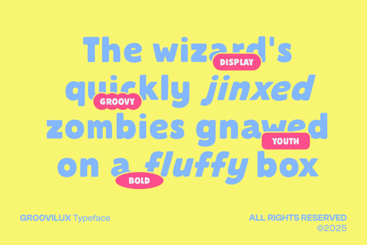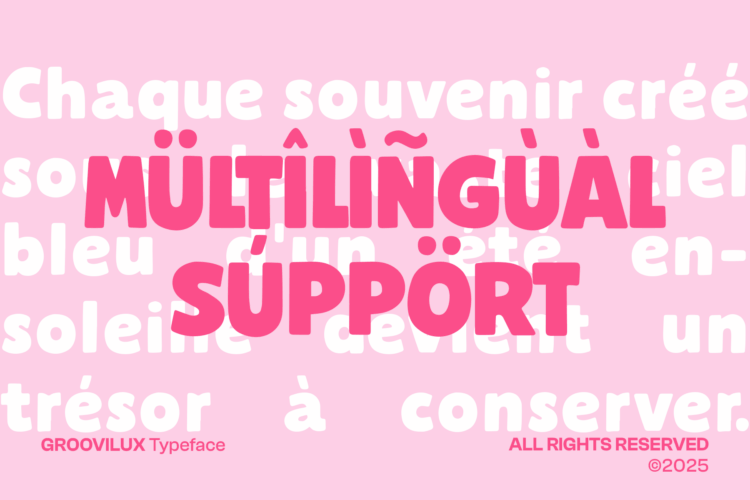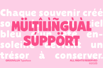 GROOVILUX is a bold retro sans typeface that channels the playful charm of 70s pop culture with a fresh, modern twist. Its chunky curves, soft terminals, and vibrant energy make it the perfect choice for projects that want to feel joyful, nostalgic, and full of character. Whether you’re crafting funky posters, children’s book covers, colorful branding, or social media graphics, GROOVILUX brings instant groove and warmth to your typography. Designed for bold statements and happy vibes, GROOVILUX thrives in big sizes and colorful palettes. A great fit for lifestyle brands, music events, retro-themed packaging, and any design that dares to smile.