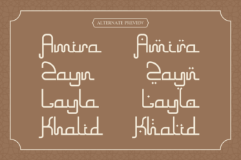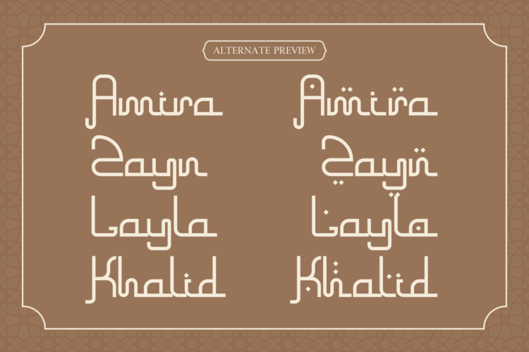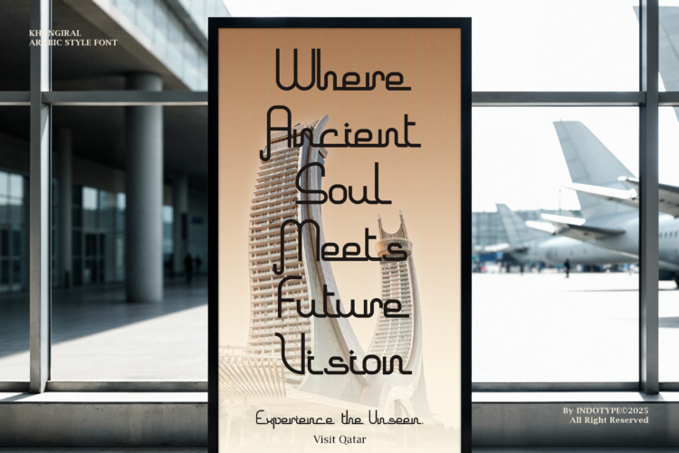 Khangiral is a striking and contemporary display font that masterfully merges clean, modern geometry with the elegant, flowing essence of Arabic script. Its monolinear construction—featuring consistent stroke weights—creates a sleek, minimalist aesthetic that is both globally sophisticated and culturally resonant. This unique blend results in a typeface that feels fresh, approachable, and distinctly modern, while paying homage to traditional calligraphic forms. Perfect for branding that seeks a cosmopolitan edge, Khangiral excels in logos, packaging, editorial headlines, and digital interfaces. Its geometric clarity ensures legibility and impact at any size, while its inherent flow adds a touch of organic warmth. Khangiral is the ideal choice for projects that aim to bridge cultural aesthetics with a forward-thinking, clean design philosophy.