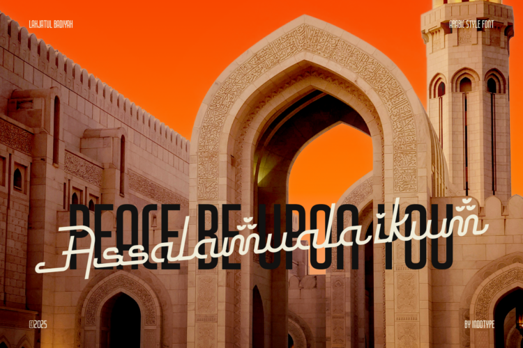 Lahjatul Badiyah is ideal for headlines, posters, branding, editorial layouts, or any visual work that requires an elegant connection between Arabic aesthetics and modern display typography.