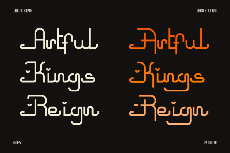 Lahjatul Badiyah is a modern Arabic-inspired display typeface that blends geometric structure with calligraphic flow. Its smooth curves and distinctive terminals echo traditional Arabic forms while maintaining the clarity and balance of a contemporary Latin design.