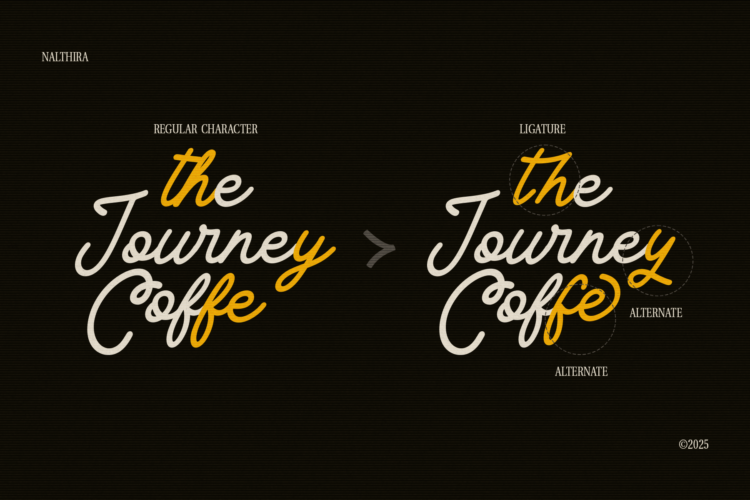 Nalthira is a monoline cursive script font designed to bring warmth, elegance, and flow to your projects. With its smooth, single-line strokes and naturally connected letters, Nalthira captures the charm of traditional cursive handwriting while maintaining modern clarity. Equipped with ligatures and alternates, this typeface offers flexibility and stylistic variety, allowing you to create unique wordmarks and expressive lettering. Its balance of casual and refined makes Nalthira a perfect choice for logos, wedding invitations, personal branding, packaging, greeting cards, lifestyle products, and editorial designs. Published by Indotype in 2025, Nalthira supports multilingual characters, making it a versatile companion for both local and international projects. Whether for elegant typography or personal creative expressions, Nalthira is crafted to leave a lasting impression.