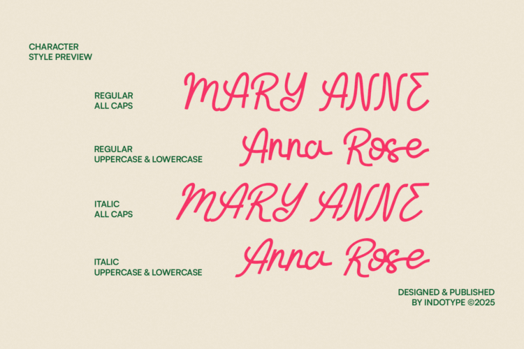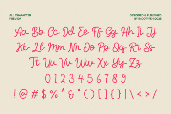 Selovia is a monoline script typeface that combines elegance with modern versatility. Designed with smooth, continuous strokes and natural curves, Selovia captures the warmth and authenticity of hand-lettering while maintaining the clarity of a clean digital font. Available in Regular and Italic styles, this typeface is perfect for projects that require a personal, friendly, and approachable feel. Its fluid letterforms make it an ideal choice for logos, wedding invitations, branding, packaging, social media, greeting cards, editorial design, and lifestyle products. Selovia also supports multilingual characters, ensuring global usability for diverse projects. Published by Indotype in 2025, Selovia is a modern script font that effortlessly balances charm and professionalism, making it a timeless addition to your type library.