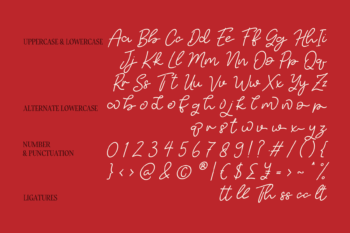 Velmira is a refined signature script typeface designed to bring the beauty of authentic handwriting into your creative projects. With its smooth, fluid strokes and graceful curves, Velmira combines elegance with a personal touch, making it an ideal choice for designs that demand sophistication and individuality.