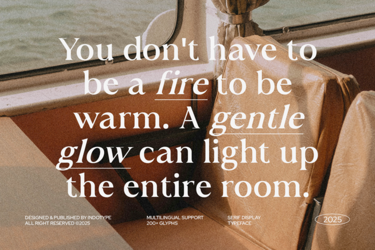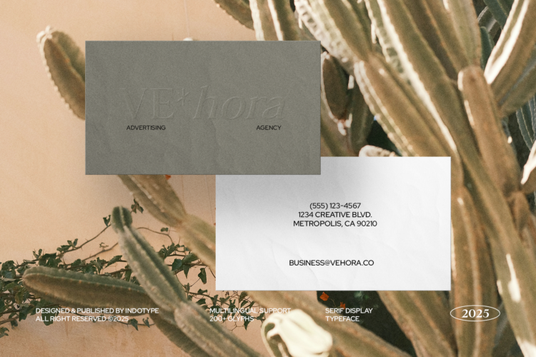 Velthora is an elegant serif display font that blends timeless sophistication with a modern artistic edge. Its bold, high-contrast strokes and graceful curves create a sense of refinement, while its sharp serifs and balanced proportions ensure strong readability in display settings. With 200+ glyphs and multilingual support, Velthora offers versatility for global use. This typeface is ideal for projects that demand a luxurious, polished look — from branding and editorial layouts to packaging, invitations, fashion, and high-end digital graphics. Designed and published by Indotype, Velthora isn’t just a font — it’s a statement of class and refinement, made to elevate every design with a touch of elegance.