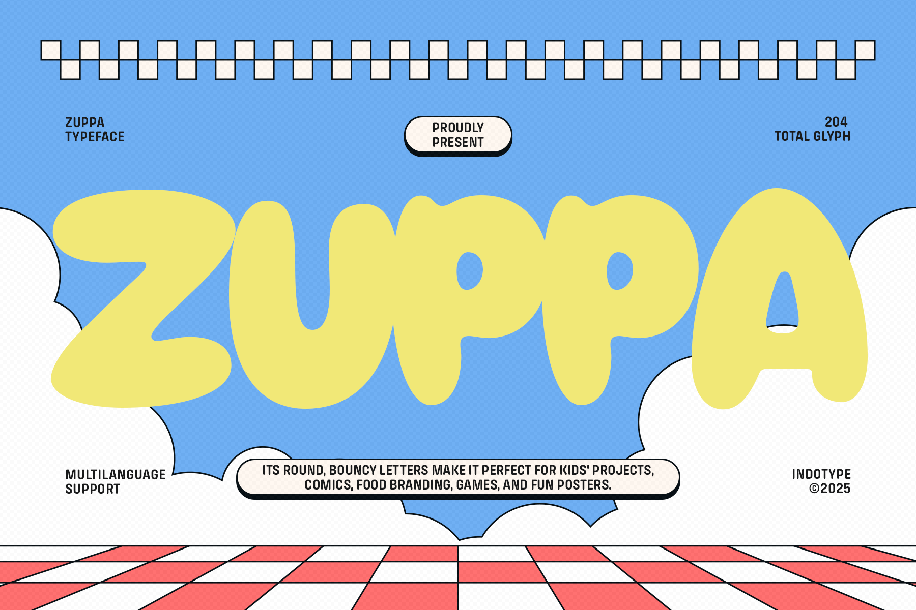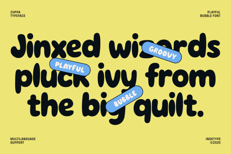 Meet Zuppa, a whimsical and irresistible bubble typeface that brings instant joy and energy to any project. Characterized by its perfectly round, bouncy letters and friendly curves, Zuppa radiates a cheerful, approachable personality that’s impossible to ignore. Its design captures the spirit of playfulness, making every word look like it’s about to bounce right off the page. With 204 total glyphs and comprehensive multilanguage support, Zuppa is as versatile as it is fun. It’s the perfect choice for children’s books, animated comics, playful food and beverage branding, casual game interfaces, and vibrant posters. Inject a dose of pure delight into your designs with Zuppa—the font that proves typography can be seriously fun.